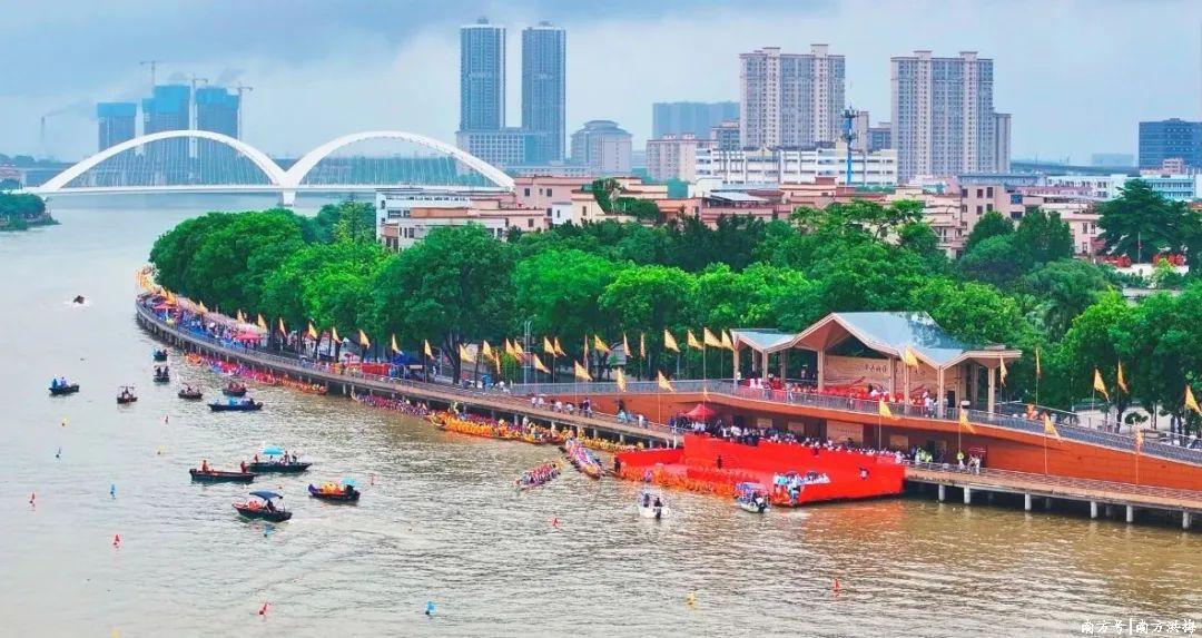 这不只是一场竞渡,更是洪梅的标志景观,是洪梅人刻进时光里的集体记忆。看两岸建筑履旧变新,看大桥舒展钢筋脊梁,看碧道蜿蜒如丝,唯有这龙舟景在更迭中焕发新生。